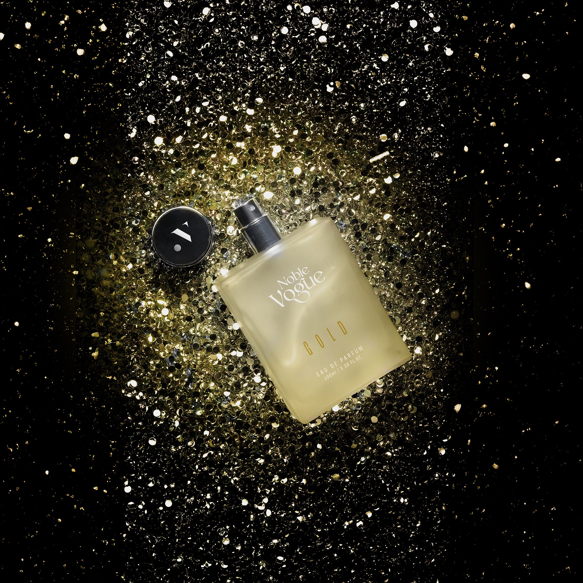 Uncover our unisex NOBLE VOGUE GOLD Parfum, made to captivate with a sophisticated blend of scents.