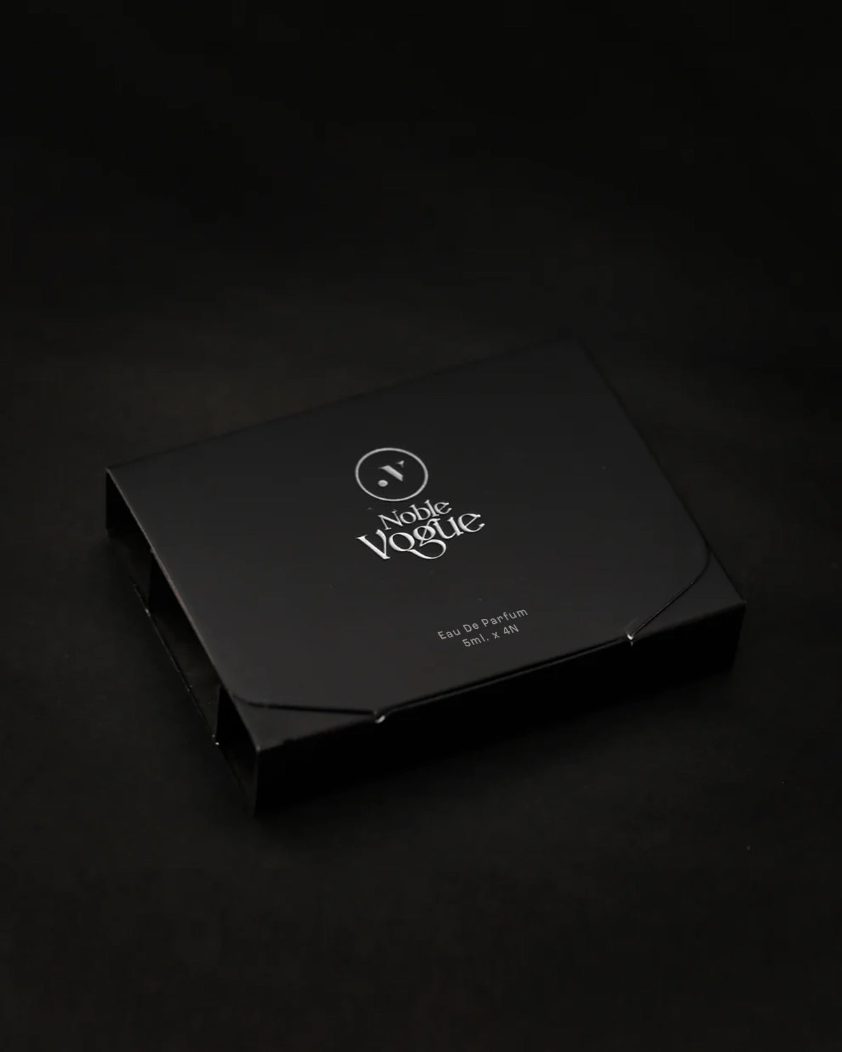 Discover four exquisite fragrances in the Noble Vogue 4 Trial Perfume Pack, perfect for every mood and occasion.