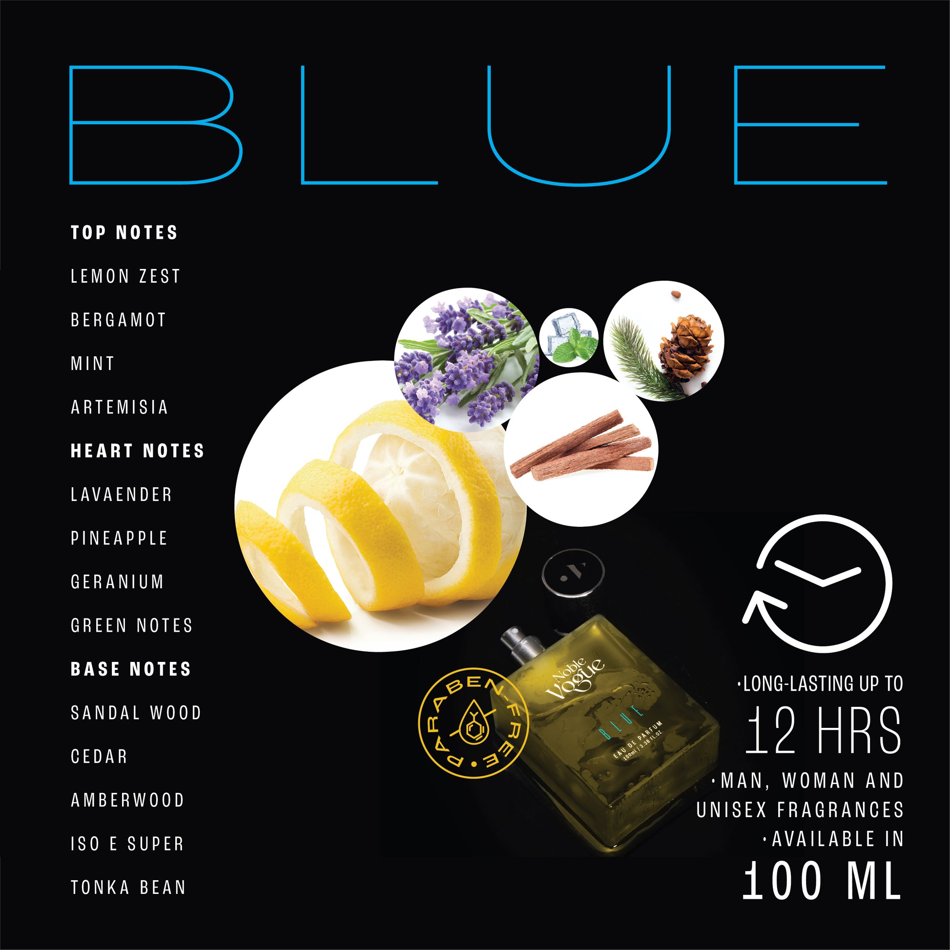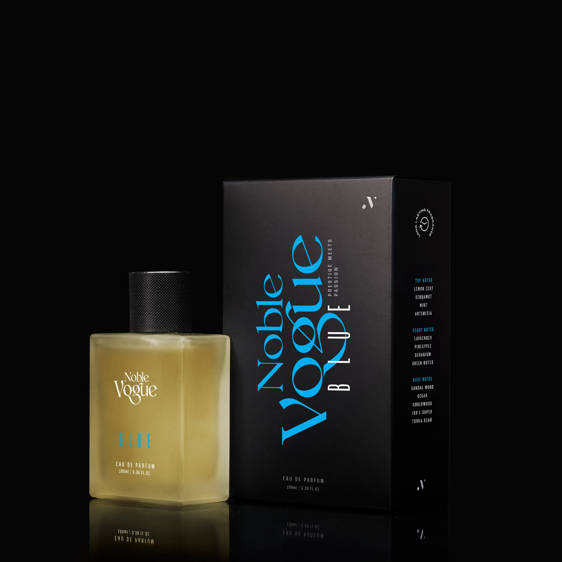Experience the refreshing and invigorating essence of Noble Vogue Blue, a fragrance inspired by the vastness of the ocean and the crispness of the open sky.