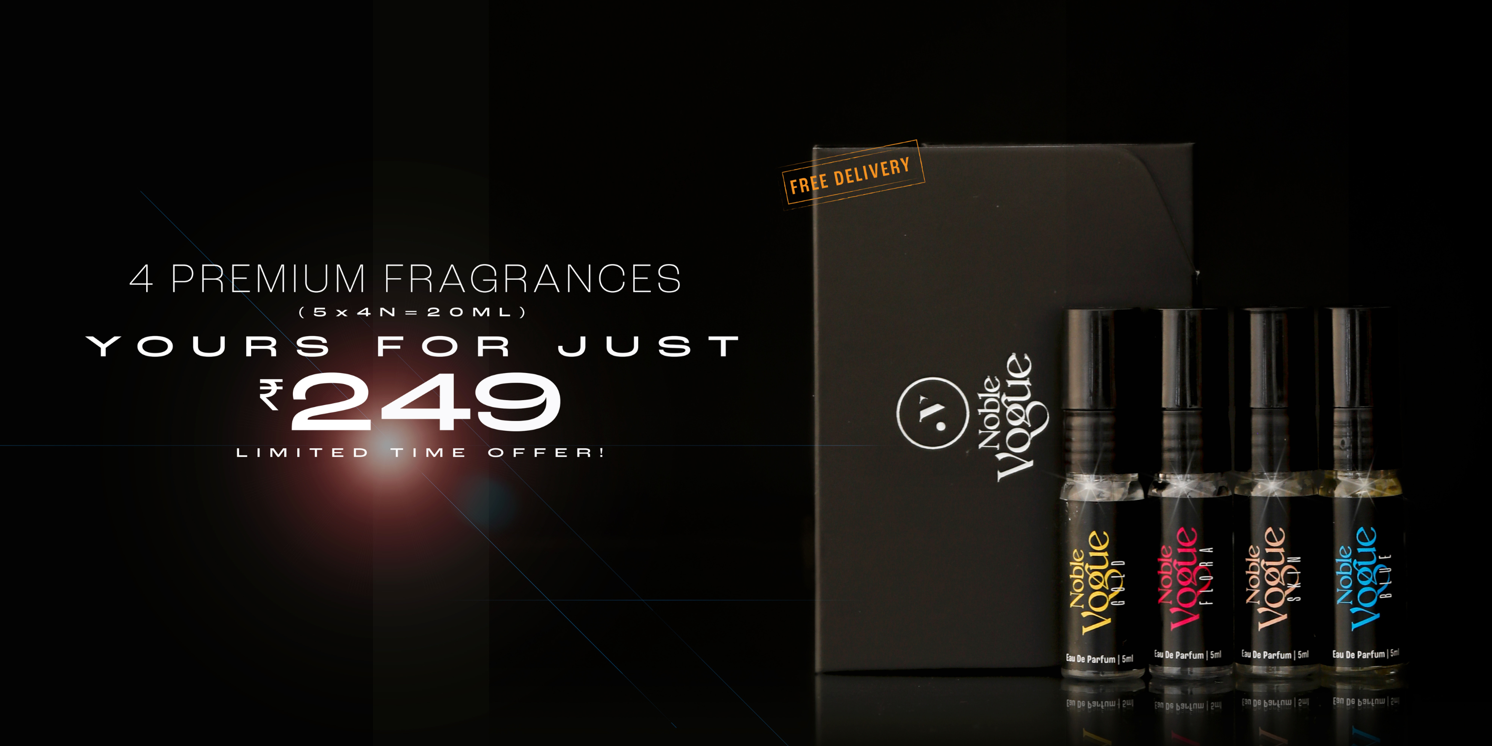 Infused with the elegance of French perfumery, Noble Vogue blends sophistication, luxury, and artistry. Crafted in India, each long-lasting fragrance begins with vibrant top notes, blooms into a rich heart, and settles into a warm, memorable base, leaving a lasting impression.